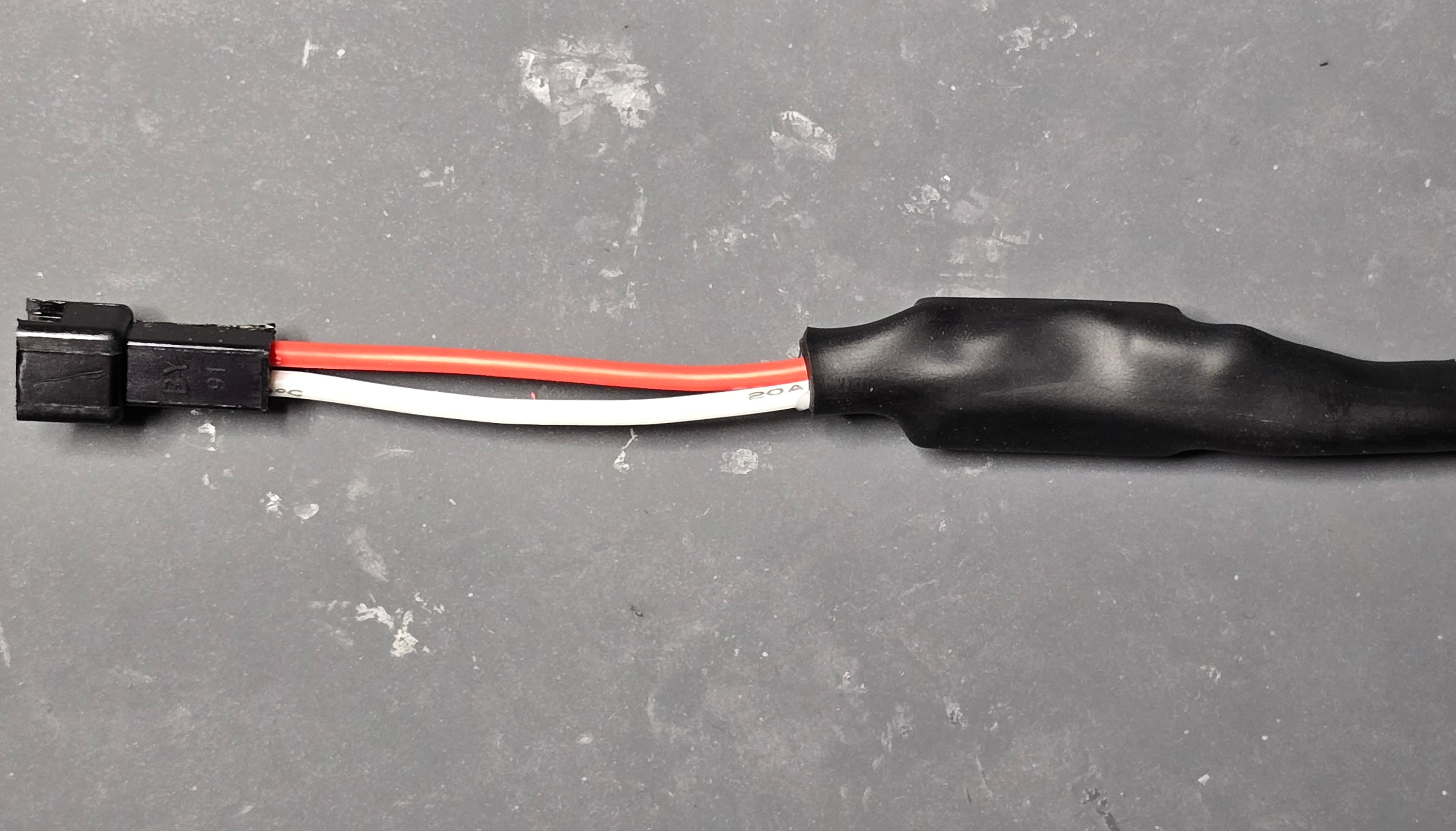 Feed the 3/8" heat shrink on and heat to shrink. Attach the jst connector housing.
